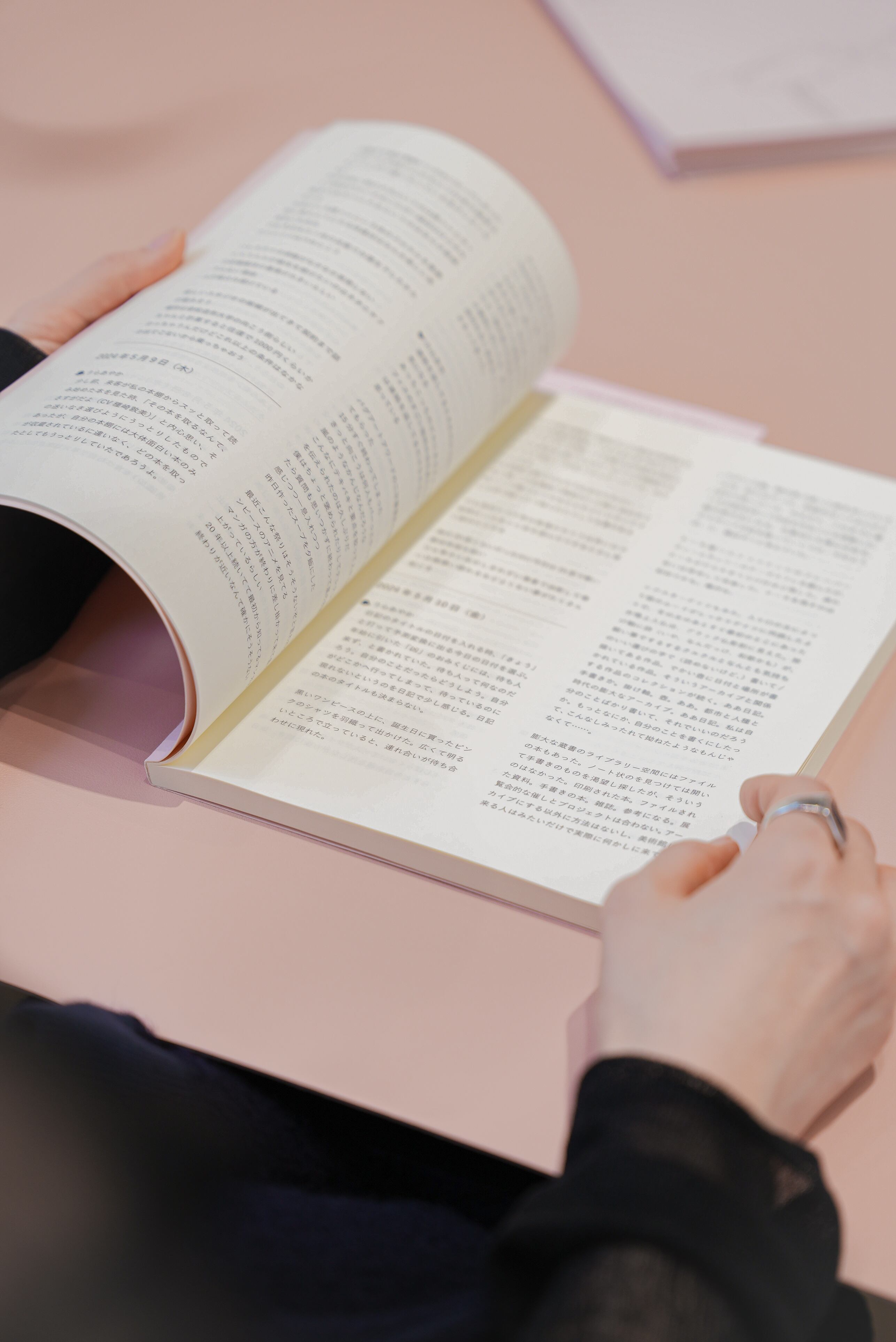 アートセンターBUGで2025年4-5月に開催された、うらあやか、小山友也、二木詩織、宮田明日鹿の4名のアーティストによる実験的な展覧会「同伴分動態」の展覧会書籍と、アーティスト、キュレーターによるプロジェクト期間中の日記本の2冊組。